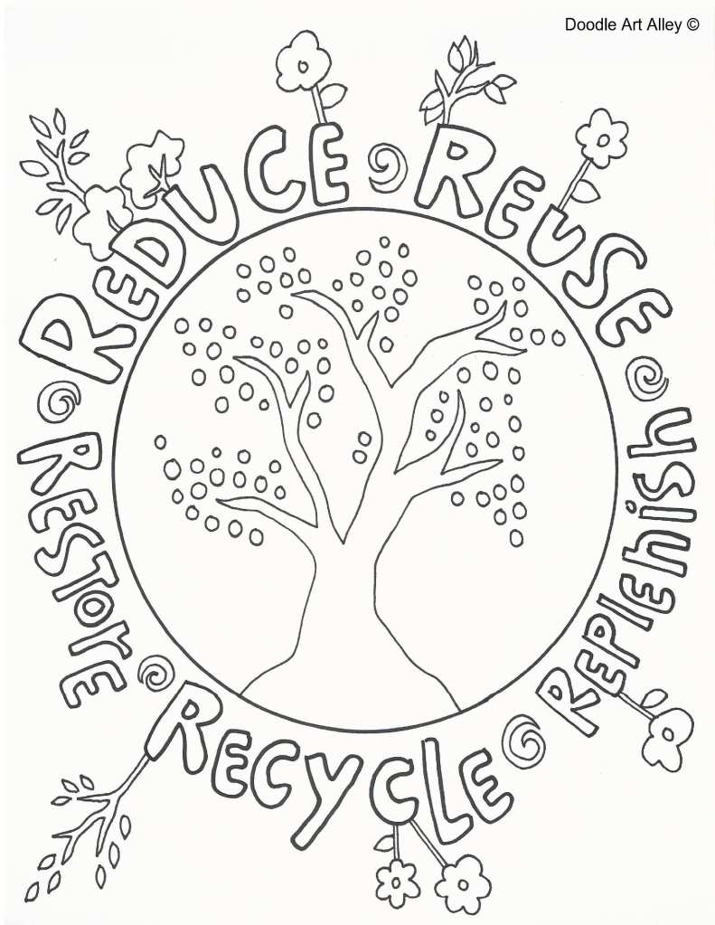 Reduce Reuse colouring page from Doodle Art Alley (free)
