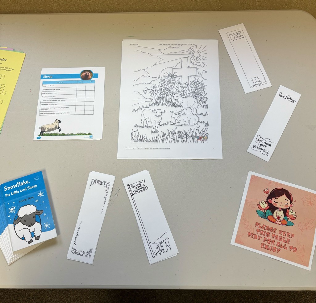 Snowflake, The Little Lost Sheep activity story, published by Christian light, which I got from a local Mennonite bookstore.