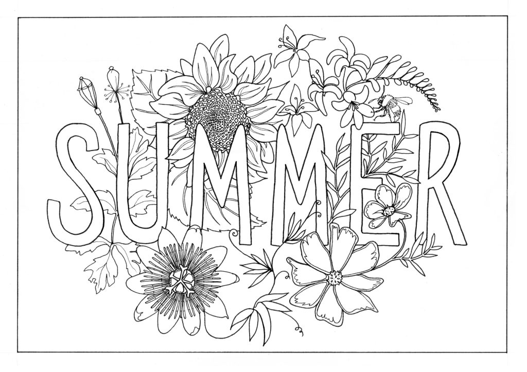 Summer colouring sheet from Lorna Johnstone (free).