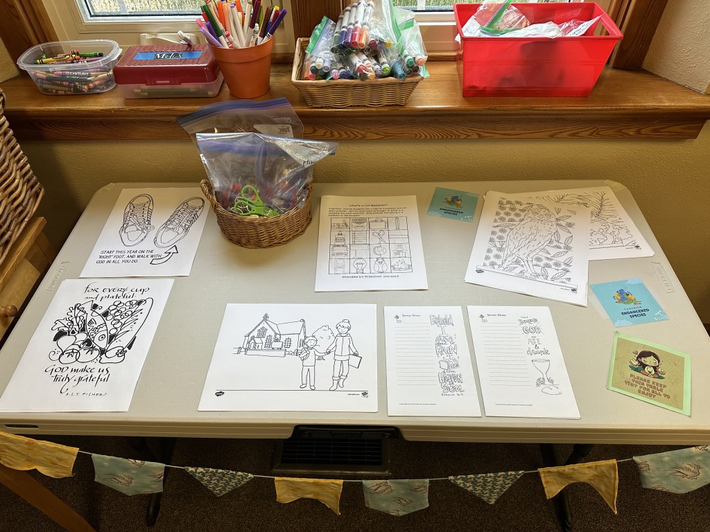 In the photos below, you can see the bunting that I sewed over the summer to decorate the table! I’m super happy with how it turned out (bonus post to come about this), and I hope it will draw a bit more attention to the ministry this church year.