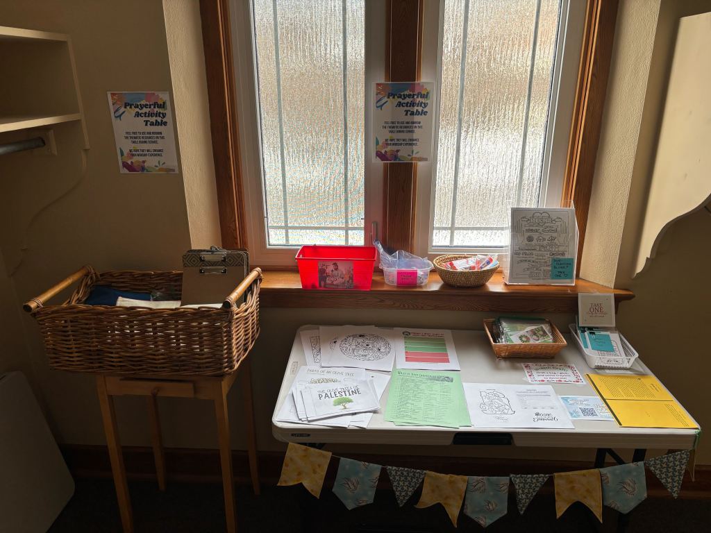 We also choose an organization during advent to support with our congregational offerings, and this season we’ve chosen The Nazareth Center for Peace Studies. I’ve tried to integrate peace-related resources into the activity table every week because of that, with a specific focus on the conflict in Palestine. I found a great bunch of free resources for kids through an organization called Ummah that has a Google drive where they can be downloaded. For weeks 1, 2, and 4 of advent, I drew on their resources for this purpose.