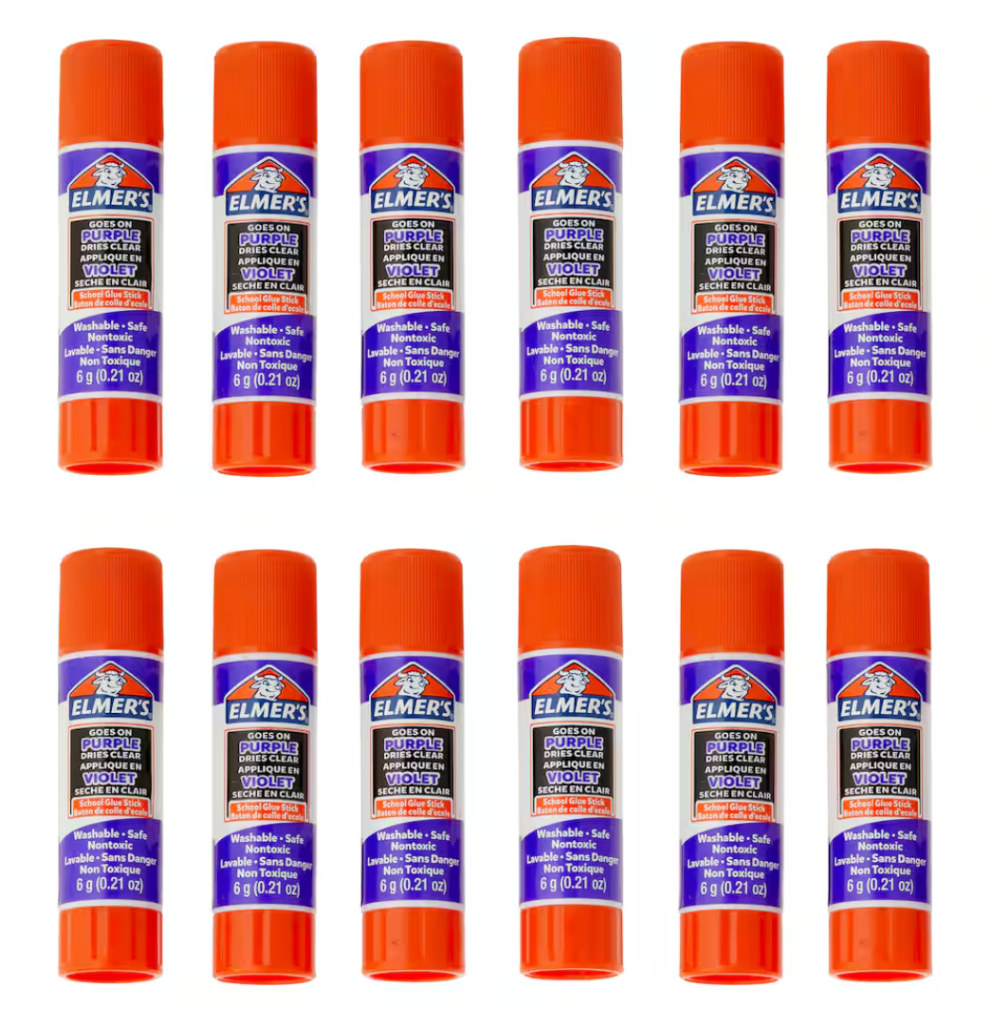 The markers get grabbed way more often than the regular crayons, but I wouldn’t actually recommend these, either – they are often used to damage the table itself, and are returned without caps. Not sustainable. I bought them for an activity that involved colouring on red cardstock. I had sort of intended for them to be a sometimes thing, but because they got so much use, I left them out. At this point, I’ll probably weed them as they get used up. The glue sticks are like that – I put them out only when I’m offering an activity that requires them.