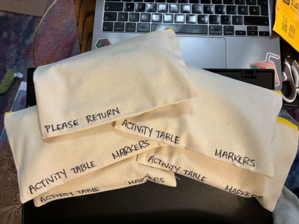 I’ve been doing some low-cost updates to our materials more recently, including making sure that there are self-contained sharpeners in all of our pencil cases that have pencil crayons, and making sure that all our colouring materials have sustainable cases, rather than being stuck in Ziplock bags as they originally were.